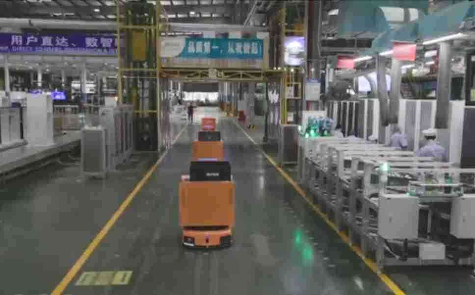 为车载冰箱物流配送打造的智能解决方案,,,包含产中物流通过潜伏举升AMR搬运至线边,,,,产后成品物流智能仓储,,,,流程包含产中物流智能齐套入库,,,线边安灯叫料AMR智能配送至线边,,,,成品入库、、、、出库,,通过无人堆高车机器人,,,,智能仓储管理替代人工作业管理,,,实现更高存储、、更高效率、、、、更具柔性化的解决方案。。